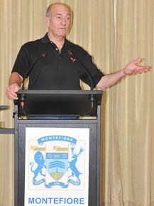 Ehud Olmert talks at Sydney’s Montefiore Home photo: Henry Benjamin