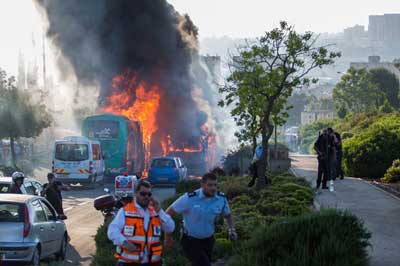 “I got on the bus with my daughter; we heard a loud explosion and the entire bus was filled with smoke,” said Rachel Dadon, who sustained minor wounds. “The glass windows shattered. I looked for my daughter and I saw her burnt. I pray that she makes it through.” Dadon’s daughter, 15-year-old Eden, was rushed to the intensive care unit in a city hospital.