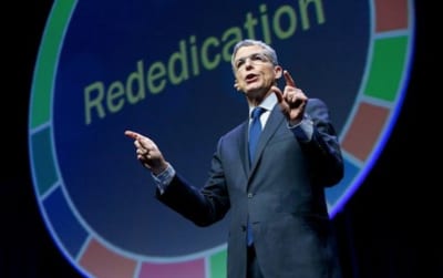 Union for Reform Judaism (URJ) President Rabbi Rick Jacobs speaks at the organization’s biennial convention in Boston. Credit: URJ via Facebook.
