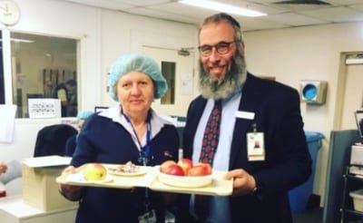 The CEO Rabbi Mendel Kastel visited the Prince of Wales Hospital giving out apples and honey to Jewish patients whose medical condition meant no Rosh Hashanah meal with their families at home.