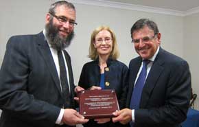 Rabbi Mendel Kastel, Gabrielle Upton and chairman Gary Cohen