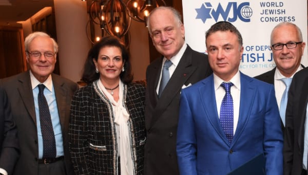 Israel Ambassador to UK Mark Regev, WJC President Ronald S. Lauder, House of Commons Speaker John Bercow, Board of Deputies Chief Executive Gillian Merron, and Board of Deputies President Jonathan Arkush. Photo: Shahar Azran