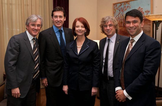 Steven Lowy, Mark Ryan, Prime Minister Julia Gillard, David Lowy and Michael Wesley