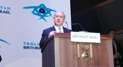 Prime Minister Benjamin Netanyahu addresses the Taglit-Birthright Israel 15th anniversary event on Wednesday in Jerusalem. Credit: Orly Eyal-Levy.