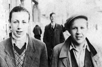 On the left, Kazik (Simha Rotem). On the right, Stefan Szwarski, a Pole whose aunt hid Kazik in her house after the Warsaw Ghetto Uprising. Photo: Yad Vashem