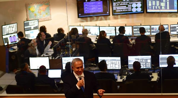 Benjamin Netanyahu at the central control unit: photo credit: Kobi Gideon (GPO)