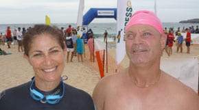438 swimmers finished the swim…but many were pulled out of the water suffering from hypothermia. Charlie McConnell and Rozanne Green made it to the finishing line in under 42 minutes.