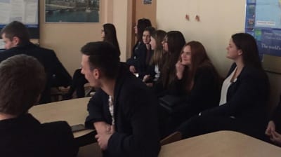 Students watching the ceremony in their class in Kedainiai, Lithuania