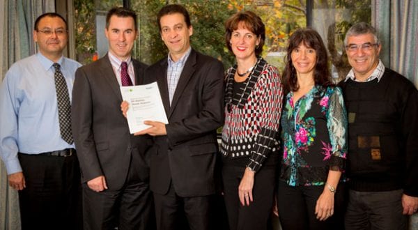 Kevin Kreiner, Disability Services Manager, Jewish Care; Bill Appleby, CEO, Jewish Care; Joe Dorfman, President Maccabi Victoria; Maureen Flaherty, GM Community Services, Jewish Care; Sharon Hamilton Board Member, Maccabi Victoria; and Russell Jaffe, President Maccabi Victoria Sports Foundation
