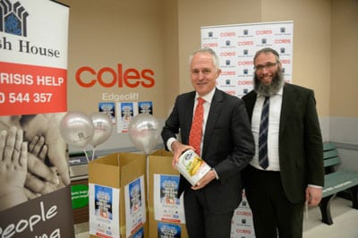 Malcolm Turnbull donates his candney’s Eastern Suburbs to lend a hand to the Jewish House’s CEO Rabbi Mendel Kastel.