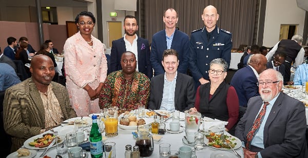 Prof Andre Renzaho, Dr Mimmie Claudine Watts, Clyde Sharady, Sam Almaliki, David Southwick MP, Minister Robin Scott MP, Assistant Commissioner Andrew Crisp, Jennifer Huppert and Grahame Leonard Photo: Paul Topol