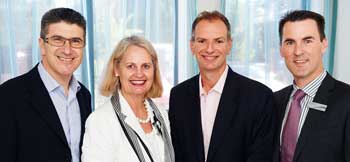 l-r: Bruce Rosengarten, President of Jewish Care, with the Parliamentary Secretary for Families & Community Services, Andrea Coote MLC, David Southwick MP and Bill Appleby, CEO.