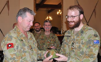 Major-General Williams received his special Yarmulke from Captain Selgelman pix: Henry Benjamin