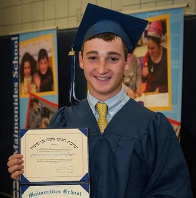 Ezra Schwartz with his high school diploma from the Maimonides School in Brookline, Mass. Credit: Maimonides School via Facebook.