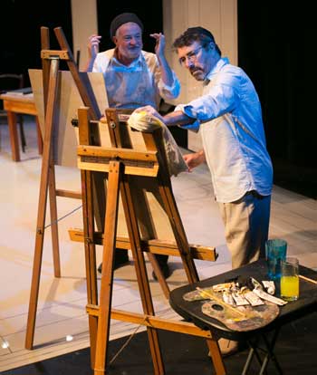 This staging of Asher Lev did not achieve the same emotional resonance as either of the two plays above, nor of Potok’s powerful book. The slower pace and energy of the production made it difficult to feel fully immersed in the story. Along with a snappier pace, the production would benefit from finding additional lightness in a play that’s filled with darkness. When light does come, in the form of Jacob and his model, to be painted nude as part of Asher’s tutelage, the release is most welcome. Tension slowly builds with the climax taking place in the art gallery when Asher Lev’s parents arrive to see, with shock and horror, their son’s first exhibition. This is a well-crafted scene, with the minimalist set of hanging windows (designed by Hugh O’Connor) and lighting (designed by Emma Lockhart-Wilson) used to great dramatic effect.
