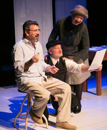 Blumenthal has assembled a cast of three highly accomplished actors. As Asher Lev, John O’Hare brings intensity to the role, though is seemingly more at ease playing the older Asher Lev than the younger versions in the flashback scenes. O’Hare portrays with sensitivity and tenderness Asher’s close relationship with his mother. However, a demanding role such as this, requires an actor to carry the audience on a very believable journey as a tormented Chassidic Jew, which O’Hare did not consistently achieve.