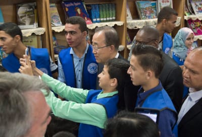 Former United Nations Secretary-General Ban Ki-moon visits a school in Gaza run by the U.N. Relief and Works Agency for Palestine Refugees in the Near East (UNRWA). Credit: U.N. Photo/Eskinder Debebe.