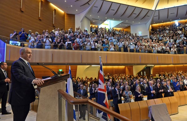 I want to salute this Jewish community, which is unusually committed to the State of Israel, to the Jewish people. You’ve shown it time and time again, you show it here today even though I think we’ll have some problem with the Jewish community in Melbourne, but that’s for the next trip, for the next trip. They’re wonderful people and you have been stalwart champions of our alliance. Israel and Australia are two vibrant democracies. This is not something that is self-evident. Democracy has to be nourished; it has to be protected; it has to be maintained. In the 19th century, the great English writer George Eliot wrote, “There will be…” she said, “…in the van of the [Middle] East… amid the despotisms of the East… a great beacon of freedom.” A great beacon of freedom, she said prophetically. And indeed this is exactly what has happened. Israel is a beacon of freedom, of tolerance, of progress in a very dark expanse that I hope and I believe will change as many Arab countries understand that Israel is not their enemy, but their vital and indispensable ally in warding off the barbarism that threatens all of us.