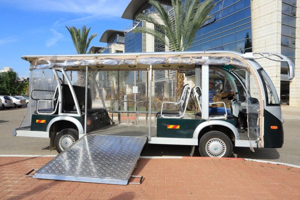 In addition to Heron, Bar-Ilan University recently purchased this wheelchair-accessible vehicle for its cross-campus, environmentally-friendly shuttle system. The shuttle system assists students and faculty with and without disabilities to navigate the University campus. Credit: Yoni Reif
