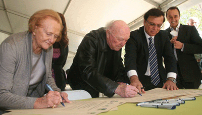 http://www.jwire.com.au/wp-content/uploads/signing-Archive290.gif main contribution towards the establishment of the bird-watching center was donated by the Besen Family Foundation of Melbourne, and over thirty members of the family took part in the ceremony. Foremost among them were Marc Besen, who celebrated his 90th birthday in the course of the visit, and his wife Eva.