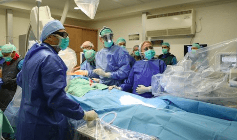At Haifa’s Rambam Health Care Campus, the first successful implantation of the new Israeli-developed “CORolla” device for the treatment of diastolic heart failure. Credit: GPO.