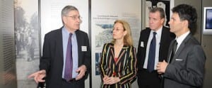 Sydney Jewish Museum CEO Norman Seligman (L) with Gabrielle Upton (2nd L) and Victor Dominello (R)