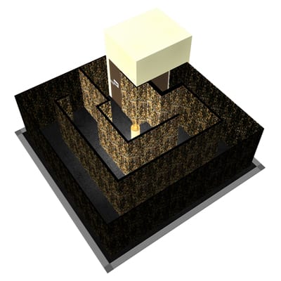 The interactive sculpture the children have designed is called Bewilderment, and is a large 6x6x6 cube of stark concrete which encases a maze that people will be able to walk into and experience. The walls of the maze itself are clear and are filled with the buttons the school has collected. In the centre of the maze is a single light shaped like a candle, the design of which will be opened to local artists for tender.