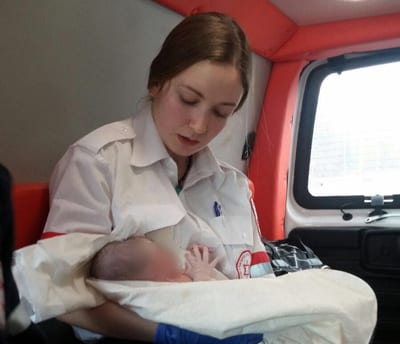 The first birth was at approximately seven in the morning. The team evacuated a 37-year-old to Shaare Zedek medical center and assisted her as she gave birth during the ride. Still excited about the incident, the team was surprise as at 10 AM they were already called to another emergency – a 41-year-old woman in labor. During her evacuation to Mayanei Hayeshua Medical Center, she gave birth to a baby girl.