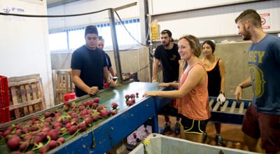 The Australians were sorting vegetables, rejecting those which did not meet Leket’s standards. The Australians, participating in the the Zionist Federation of Australia’s Israel By Choice program, then pack the food into crates ready for distribution. Leket hosts a call centre which checks with the non-profits and tells them what foods are available so that none receives foodstuffs they are not in need of. Fiedler said: “They could want apples, beets, peppers, onions…you name it. We know how many people each centre caters for so we more or less deliver the right amount of food for them.We have very little waste. For example, we know that the Ethiopian community does not eat eggplant so none goes to them.”