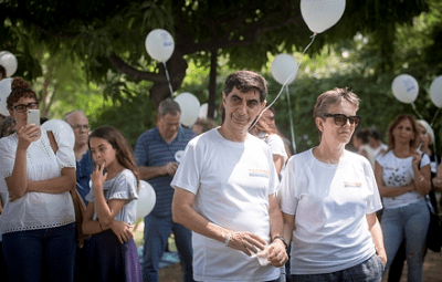 Leah and Simcha Goldin, the parents of late IDF Lt. Hadar Goldin, whose body is being held by Hamas in Gaza, attend a rally outside of Israel’s Ministry of Defense in Tel Aviv on Aug. 31, 2018, calling on the government to do more to return the bodies of Goldin and IDF soldier Oron Shaul. Credit: Miriam Alster/Flash90.