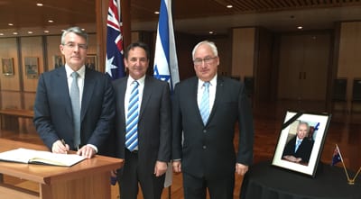 Israel’s embassy in Australia opened a condolences book at the Federal Parliament to record tributes on the passing way of Shimon Peres the last of the surviving founders of the modern State of Israel.