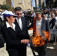 Ruth and Professor Judea Pearl, the parents of the late American Jewish journalist Daniel Pearl murdered in Pakistan, lit the memorial flame at a Yom Hazikaron – Israel Memorial Day ceremony in Jerusalem.