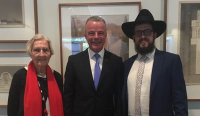 Margaret Beadman, Brendan Nelson and Rabbi Shmueli Feldman