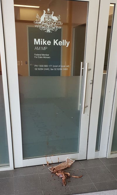 Pig’s entrails thrown at Mike Kelly’s Queanbeyan office door
