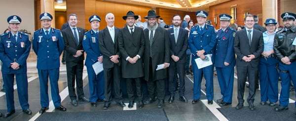 Superintendent Brad Hodder, Superintendent Jason Box, Scott Weber – President of the Police Association, Superintendent Michael Fitzgerald, Chief Superintendent Tony Trichter, Rabbi Levi Wolff, Rabbi Mendel Kastel, Chaplain Owen Davies, Superintendent Gavin Dengate, Chaplain Paul O’Donoghue, Jeremy Spinak, Jacqui Wasserman, Damien Cohen