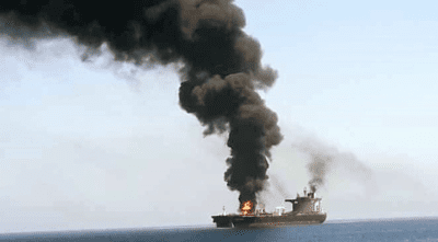 Two oil tankers were attacked on June 13, 2019, in the Gulf of Oman, less than a month after Iran was blamed for attacking four oil tankers off the coast of the United Arab Emirates. Credit: Screenshot.