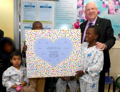 Israel’s President Reuven Rivlin has visited children from developing countries being treated for heart conditions at Wolfson Medical Centre in Holon by ‘Save a Child’s Heart’.