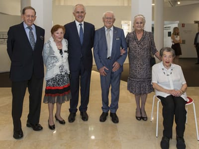 Egon Sonnenschein, Yvonne Engelman,. Malcolm Turnbull, Prime Minister of Australia, Eddie Jaku, Olga Horak and Lottie Weiss