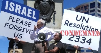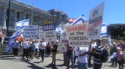 240 local people from the Wellington Jewish Community and other friends of Israel groups and individuals joined the rally. Joining the protest is Jewish Wellington identity David Zwartz a former Honorary Consul of Israel who addressed the meeting saying “UNSC 2334 totally negated the foundation UNSC 242 of 1967 which referred to ‘secure and recognised boundaries’”