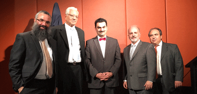 Greek Consul-General Dr Stavros Kyrimis [c] with Rabbi Dovid Slavin [l]
