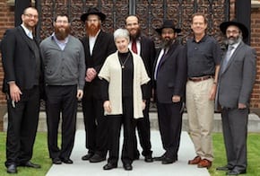 L-R: Rabbi Samuel Altshul, Rabbi Dovid Gutnick, Rabbi Michoel Stern, Rev'd. Marilyn Hope, Rabbi Yosef Nerenberg, Rabbi Boruch Schapiro, Rev. Tom Miller, Rabbi Meir Shlomo Kluwgant.