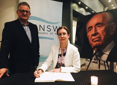 As the world leaders gathered in Jerusalem last Friday to pay tribute to Shimon Peres, the Zionist Council of NSW and the Embassy of the State of the Israel have opened a condolence book in Sydney as a mark of respect from the NSW community.