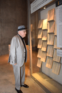 Branko Lustig looking at a facsimile of Schindler’s List in Yad Vashem’s Holocaust History Museum