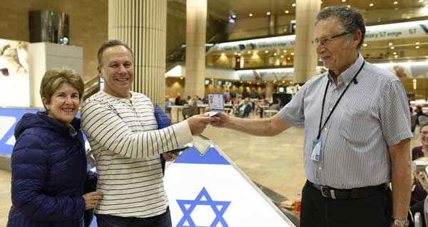 Ian and Sara Miller being welcomed by Keren Hayesod representative Liat Shevach Dahan