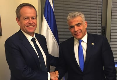 Bill Shorten and Chairman of the Yesh Atid Party Yair Lapid
