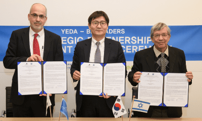 The agreements were launched this week in a special ceremony held at the Weizmann Institute of Science with Yozma Group Asia’s Managing Partner, Mr. Wonjae Lee; BioLeaders’ CEO, Dr. Young-Chul Park; the Institute’s President, Prof. Daniel Zajfman, its Vice President for Technology Transfer, Prof. Mordechai Sheves; and Yeda’s CEO, Gil Granot-Mayer.
