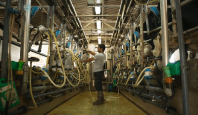 The milking process at HaYogev, a moshav (cooperative agricultural community) in northern Israel. Credit: Roy Berkovich/Israeli Dairy Board.