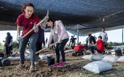Boyer High School students participating in the archaeological excavation at Ramat Bet Shemesh. Photo: Israel Antiquities Authority
