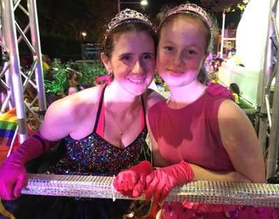The intermittent drizzle did nothing to diminish the electric energy of the night. “It was wonderful to feel the welcoming vibe throughout the parade”, said Kim Gotlieb, Secretary of Dayenu and organiser of this year’s float. He also added that it remains important to maintain a Jewish presence in the GLBTI community, as well as keeping the conversation alive in the various streams of Judaism. Kim was featured on the float wearing a dazzling gold sequinned outfit, which was previewed at the Mardi Gras Shabbat service and dinner at Emanuel synagogue in Woollahra.