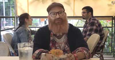 The vignette casting Jewish Home party leader Naftali Bennett in the role of a Tel Aviv hippie apologizing for merely walking down the street, the first video of his “Stop Apologizing” series that opposes perceived left-wing appeasement. Credit: YouTube screenshot via Naftali Bennett.